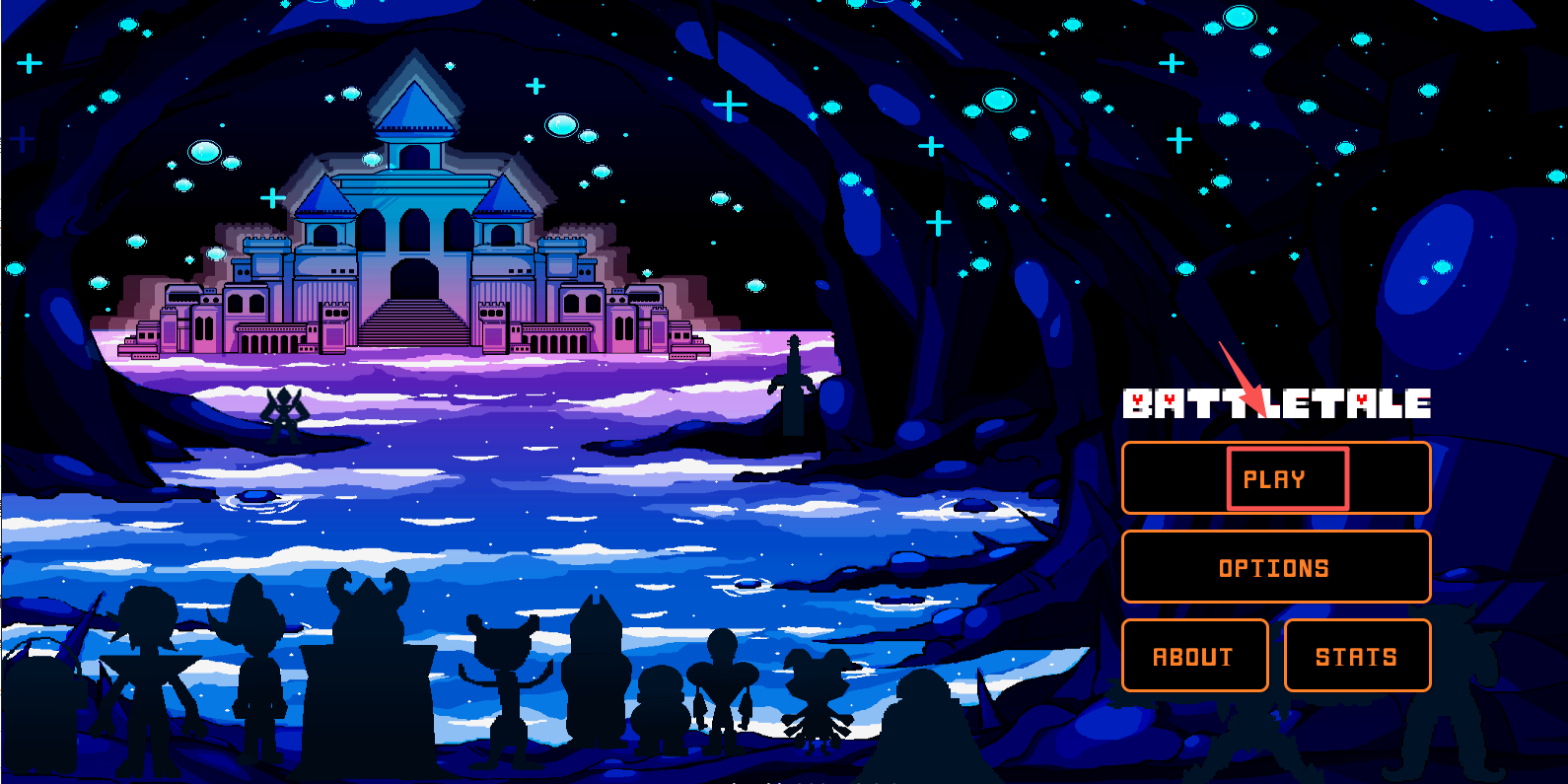 1、进入游戏主菜单,点击“PLAY”按钮开始游戏,或选择其他选项进行设置。