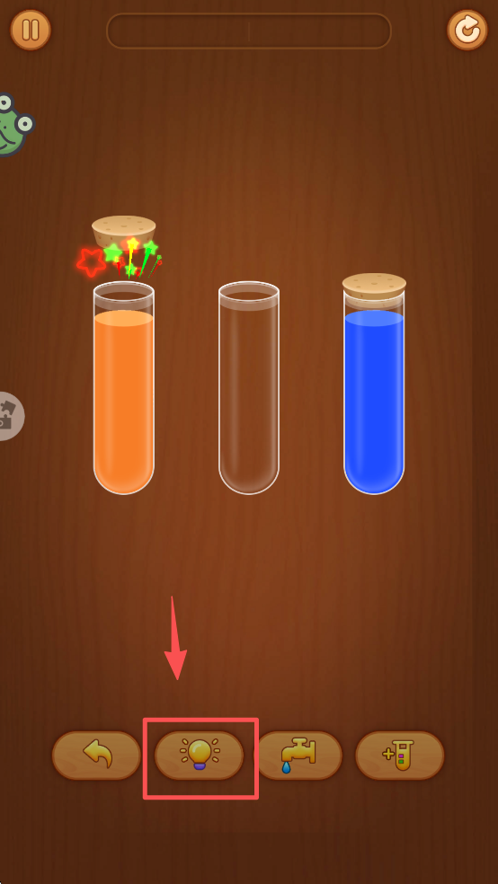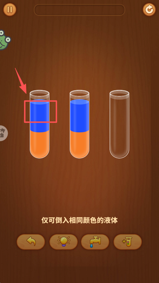 3、仅倒入相同颜色的液体。确保每个瓶子中的液体颜色一致,以完成关卡目标。