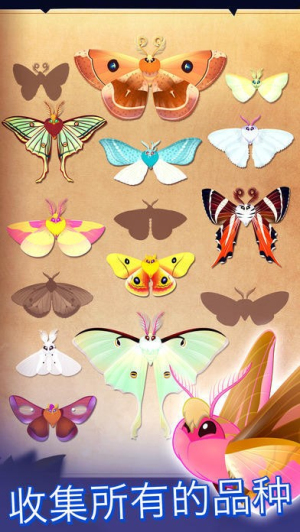 2、玩家可探寻近百种形态各异的珍稀蝴蝶,每一只均经过生物学考据与艺术化设计,鳞翅纹理在星光下闪烁微光,满足收藏欲望。