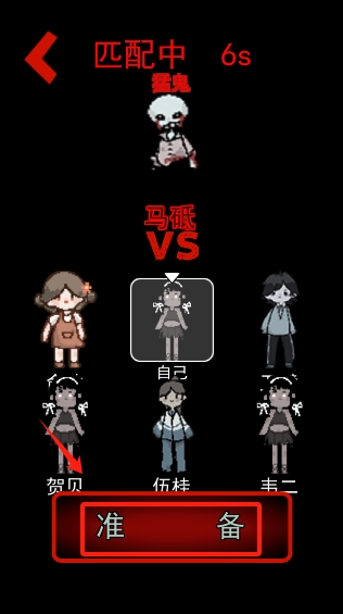 2、在匹配界面,等待匹配完成后,点击 “准备” 按钮,进入游戏场景。