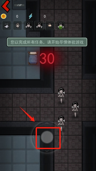 3、在游戏场景中,点击屏幕下方的圆形按钮,控制角色移动并探索宿舍。