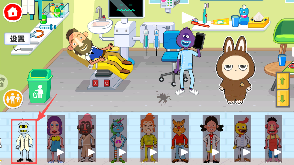 3、选择正确的医生进行手术。点击箭头按钮查看不同的医生角色和能力。