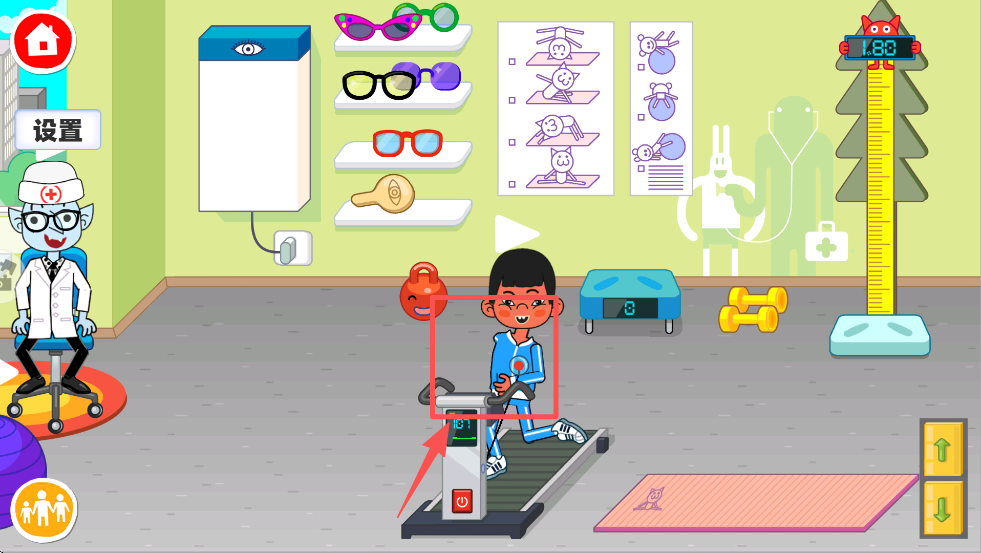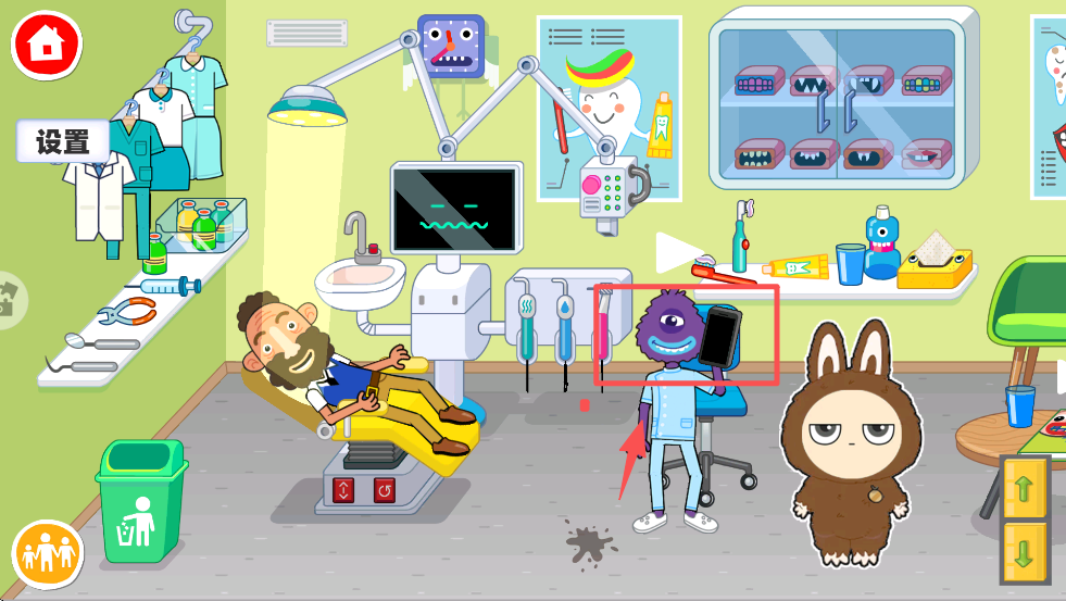 2、在医院场景中,点击病人并进行诊断。根据病情选择合适的治疗方式。
