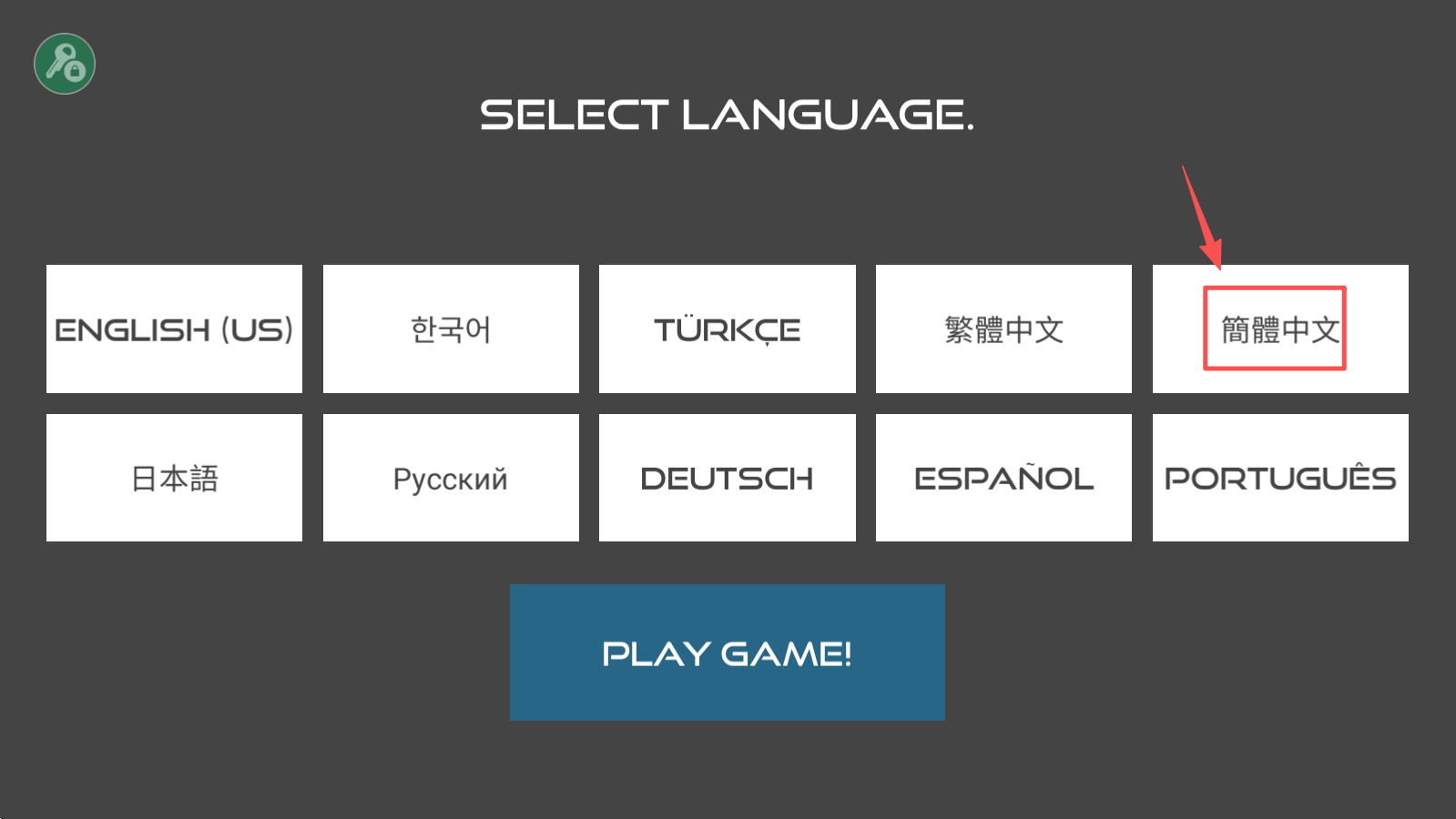 1、在“SELECT LANGUAGE”界面选择“简体中文”,点击“PLAY GAME!”开始游戏。