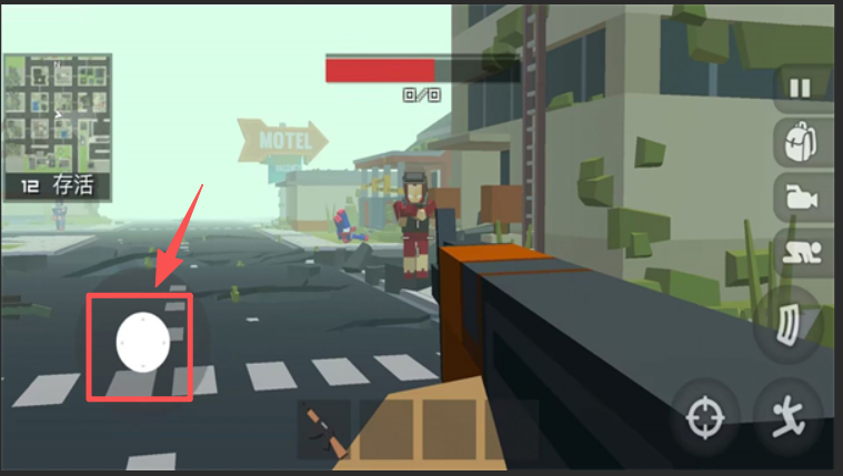 2、移动角色至目标。使用虚拟摇杆控制角色移动,接近目标或敌人。