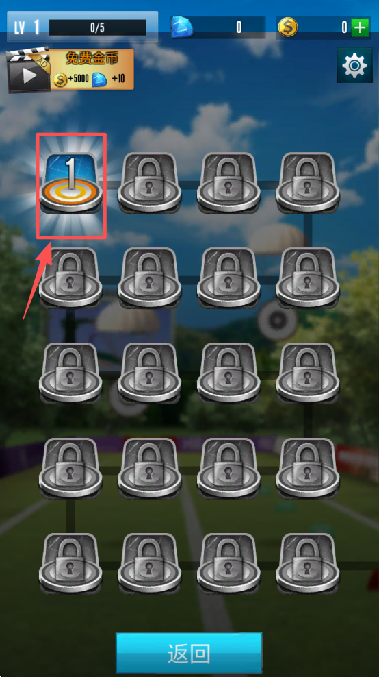 2、选择关卡并点击。在关卡选择界面,点击第一个解锁的关卡进入。