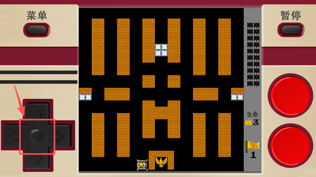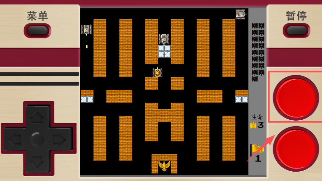 4、开始游戏并控制射击,点击右下角的红色按钮开始游戏,使用射击键消灭敌人。