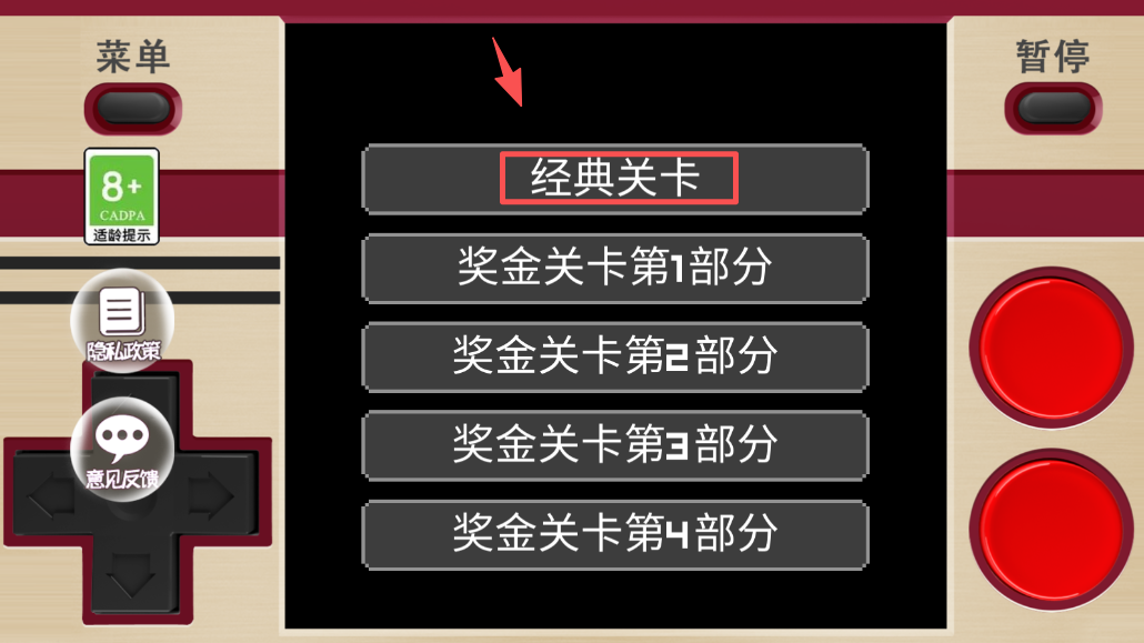 1、从主菜单选择关卡,点击“经典关卡”进入相应的游戏部分。