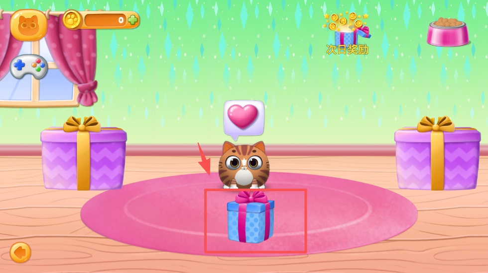 4、点击转盘上的礼物盒,给宠物送礼物,提高宠物的满意度。