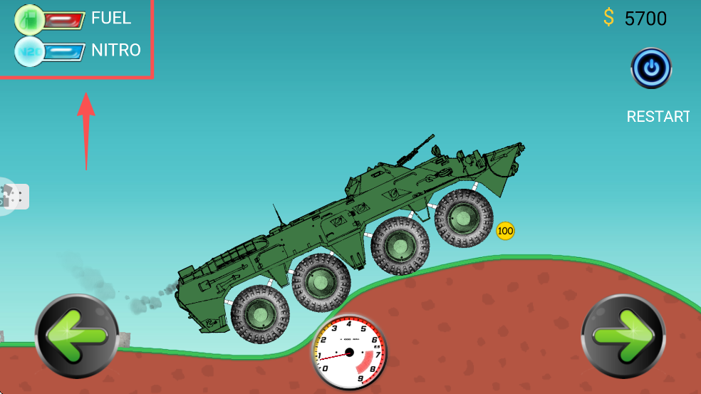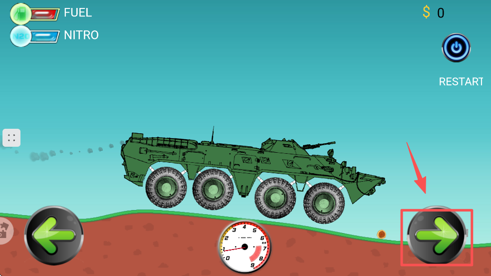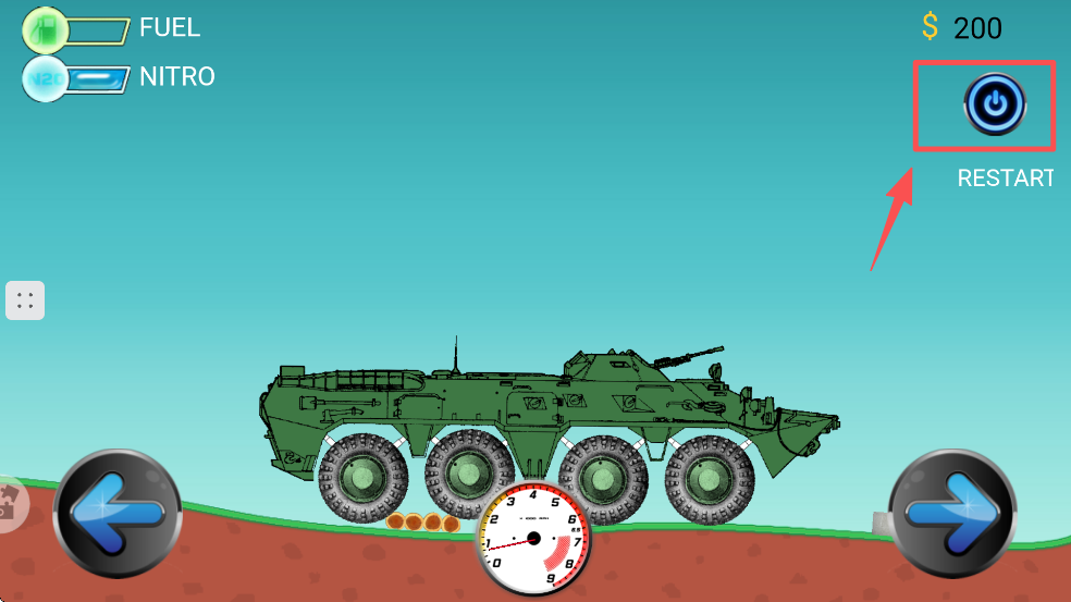 1、点击“RESTART”按钮开始游戏,准备驾驶坦克进行冒险。