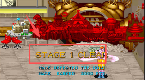 4、击败所有敌人,完成关卡后,会显示“STAGE 1 CLEAR”表示通关。