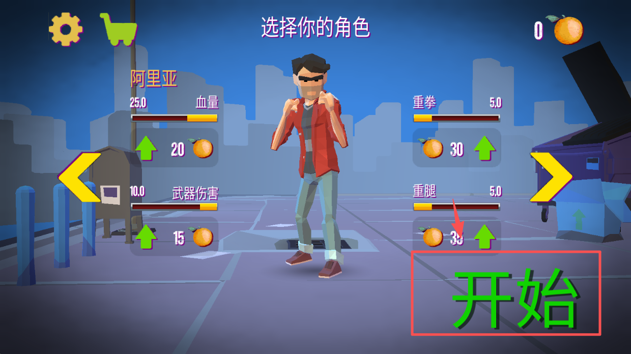 2、在角色选择界面点击“开始”按钮,选择你的角色并开始游戏。