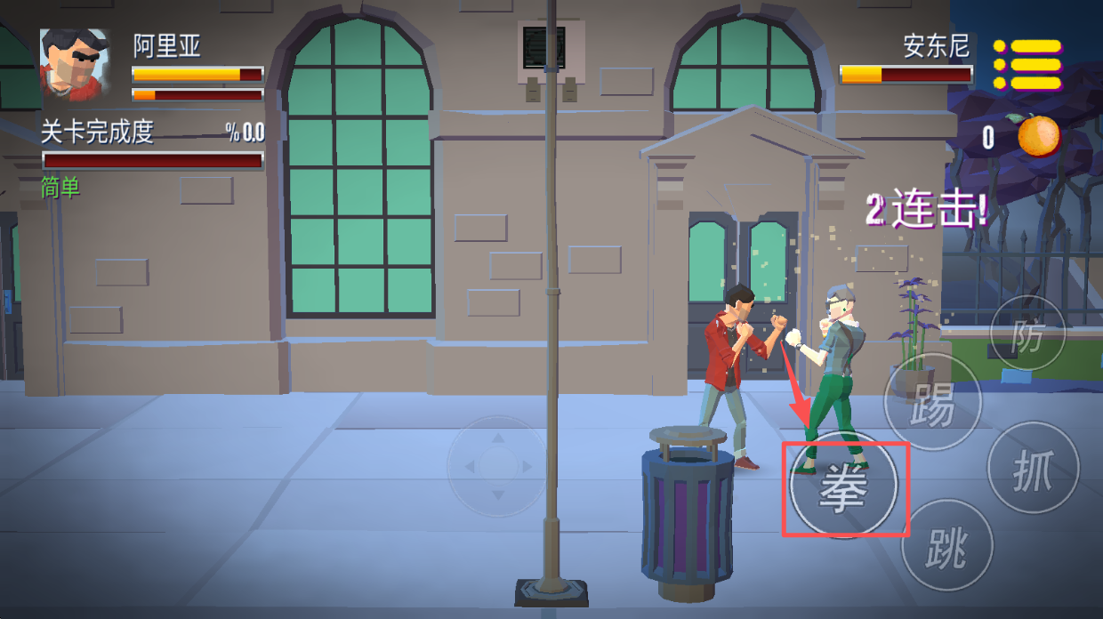 4、点击屏幕上的“拳”按钮进行攻击,与敌人进行战斗并尝试连击。