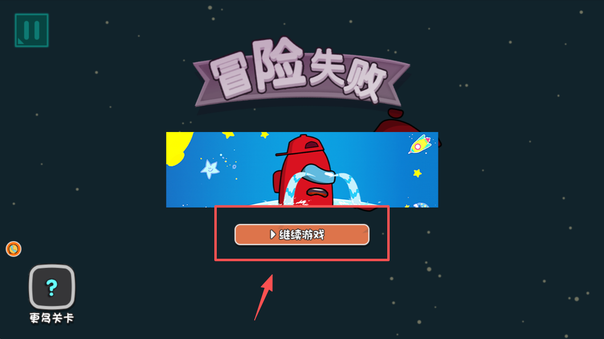 3、如果冒险失败,点击“继续游戏”按钮重新开始,尝试不同的策略。