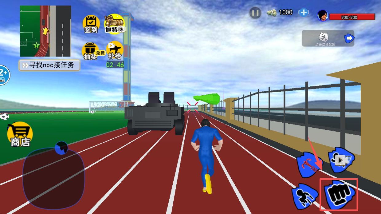 4、点击左下角的跳跃按钮,控制角色跳跃,收集金币,避开障碍。