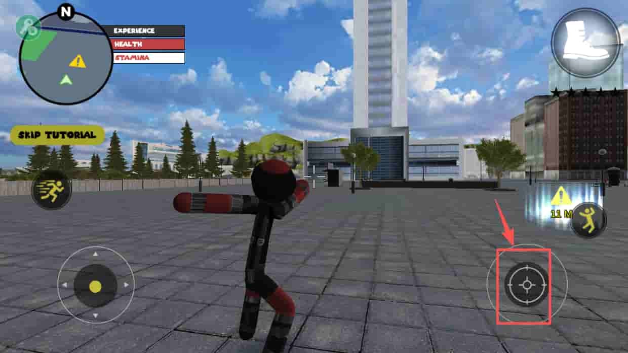 3、点击屏幕右侧的瞄准按钮,锁定敌人准备攻击。