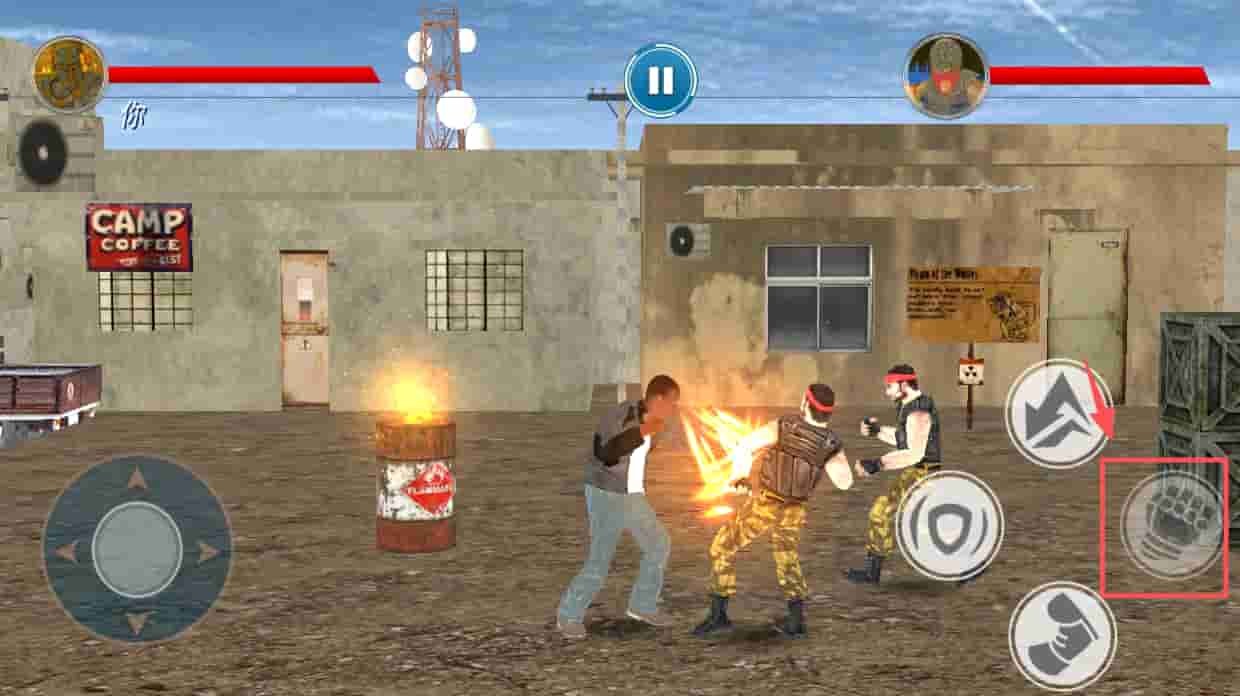4、在战斗场景中,使用屏幕上的虚拟按钮进行攻击和移动。