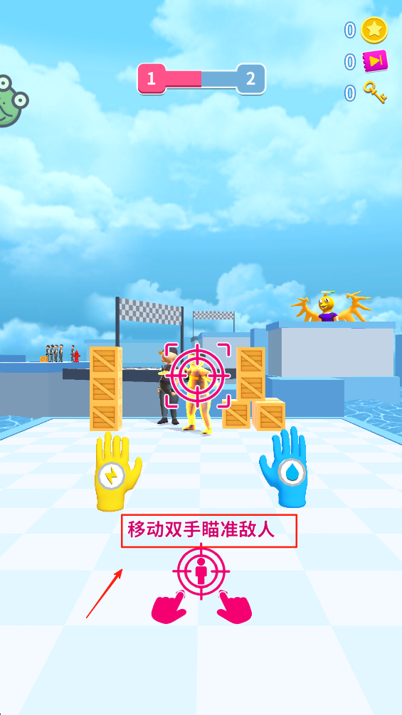 2、当遇到敌人时,移动双手瞄准并攻击敌人,击败他们以继续前进。