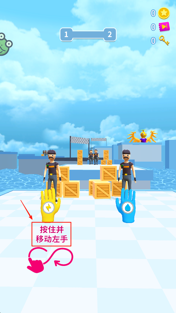 1、在游戏开始时,按住并移动左手来控制角色移动,避开障碍物。