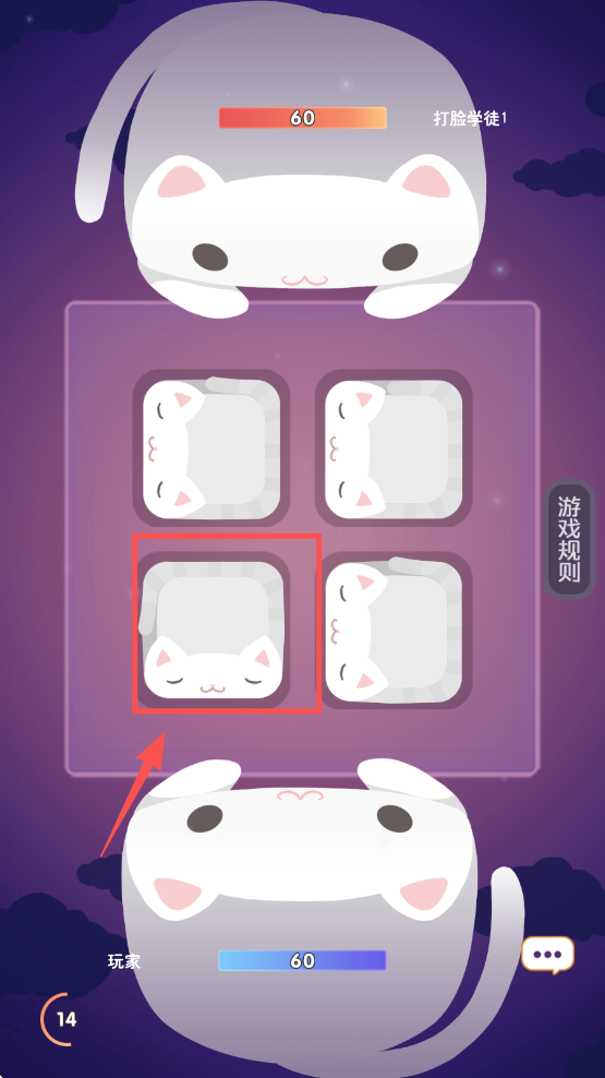 2、在游戏界面中,选择一张猫咪卡片,与对手进行对战,体验打脸的艺术。