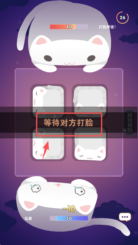 3、当轮到对手时,点击“等待对方打脸”提示,耐心等待,观察对手的出牌策略。