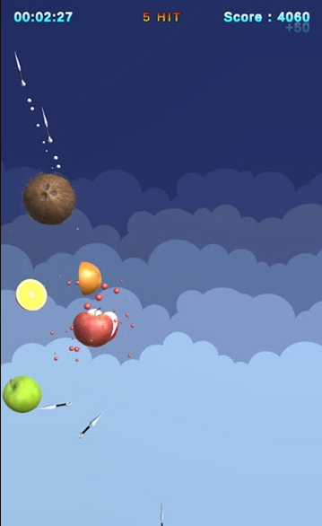 1、点击屏幕,准确射向每个水果,拥有高分目标。