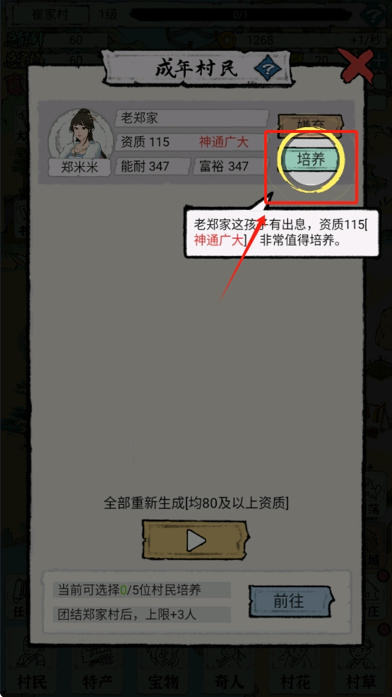 1、在角色信息界面,找到并点击 “培养” 按钮,进入角色培养设置界面。