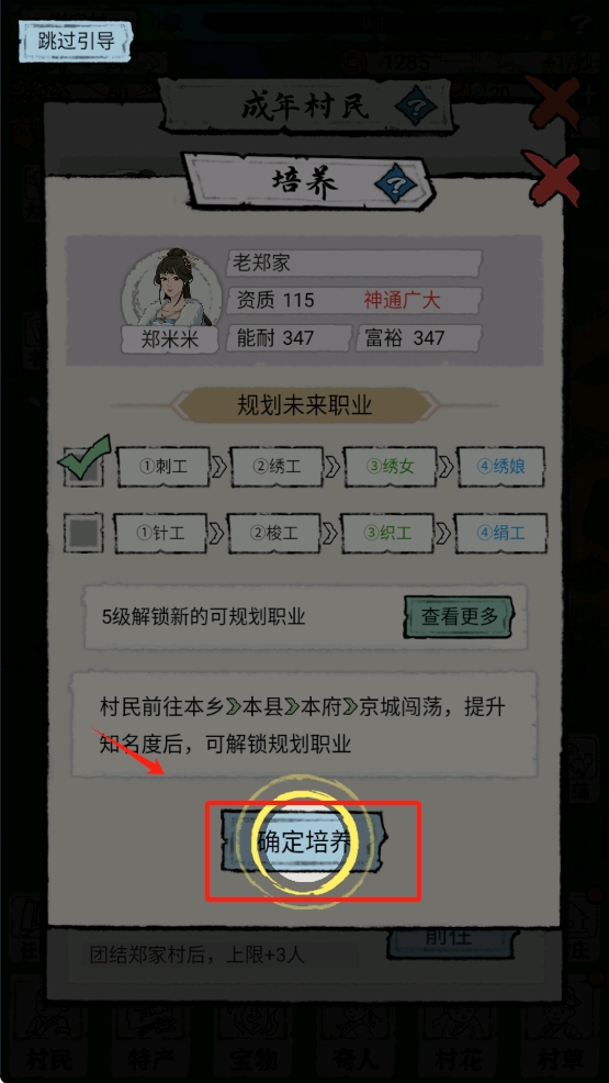 2、在培养界面,为角色选择合适的职业发展路径,点击 “确定培养” 按钮完成设置。