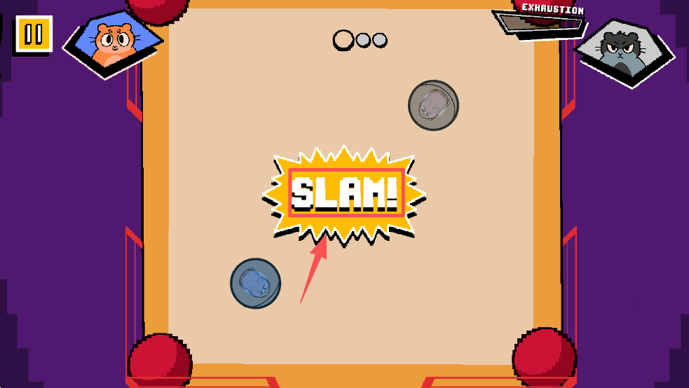 4、最后,注意“SLAM!”提示,把握时机,让仓鼠球撞击目标,获取分数。