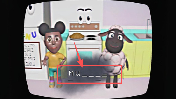 4、进行游戏互动,在游戏中与角色和物品互动,例如点击“MU”与羊进行交流。