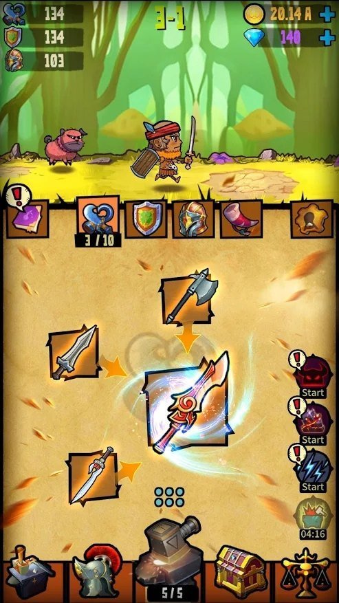 合并与伪造空闲武器大师是一个放置和战斗的游戏,控制你的战士完成各种令人兴奋的战斗在这个冒险的过程中。你的责任是维护这里的正义与和平。通过招募,你将聚集所有的英雄。作为武器大师,你有机会创造一个真正的神器来对抗邪恶势力。在消灭一切敌人之前,你必须勇敢地前进,而不是停滞不前。不前进。