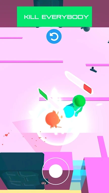 1、操纵杆控制你的反派移动并攻击看不见的敌人,左上角显示敌人的数量;
