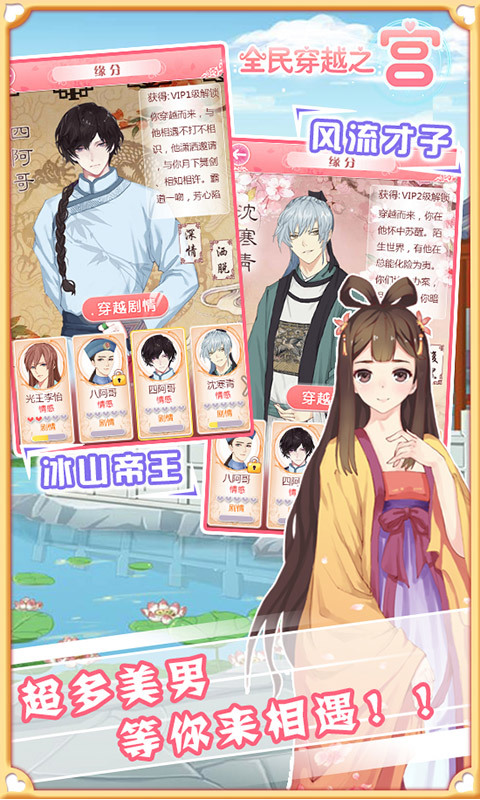 全民穿越之官游戏下载下面由小编给大家详情带来,这款全民穿越之官游戏的画面风格精致简洁,游戏中给大家设计了超多丰富的玩法剧情模式,玩家将需要操控游戏角色来展开浪漫的恋爱剧情玩法挑战,非常有趣,大家喜欢的一起来下载试试吧!谢谢。
