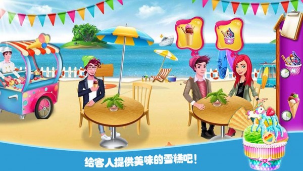 这是一款模拟在夏天制作冰淇淋的游戏。你在海滩边开了一个冰淇淋摊,关注顾客的需求,制作满足他们需求的冰淇淋。时间是有限的。
